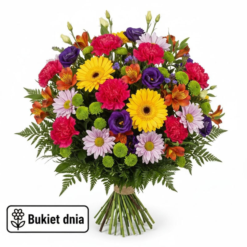 Bukiet Dnia powstaje z najświeższych kwiatów dostępnych danego dnia w kwiaciarni. Florystka samodzielnie dobiera kwiaty, kolory i styl kompozycji. W aranżacjach wykorzystywane są zarówno kwiaty sezonowe, jak i całoroczne, tworząc naturalną i spójną całość. To doskonały wybór na każdą okazję. Zamów bukiet z dostawą na terenie Zielonej Góry i spraw radość bliskiej osobie.