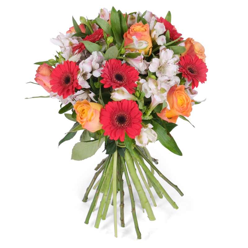 Zawsze świeże kwiaty Damska kompozycja to bukiet pełny życia i naturalnego piękna, który celebruje kobiecość w jej najbardziej autentycznej formie. Róże przyciągają uwagę swoją klasyczną formą, gerbery dodają dynamiki i radości, a alstromerie wnoszą spokój i równowagę. Podaruj upominek wyjątkowej kobiecie!